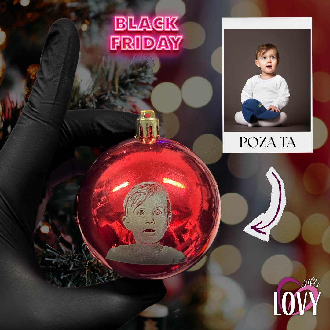 Transformă bradul tău într-o amintire de neuitat! Acest glob elegant este personalizat prin gravură cu poza dorită de tine — perfect pentru a surprinde momentele speciale alături de cei dragi. Ideal ca decor unic sau cadou de suflet pentru familie, prieteni ori cupluri.
